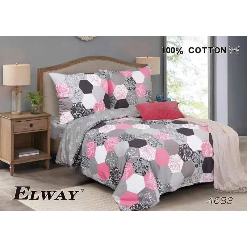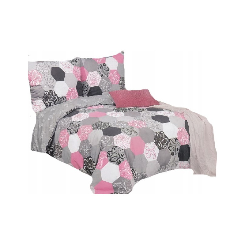 Pościel Dwustronna Bawełniana Elway 140/200 Grafika Różowa Szara