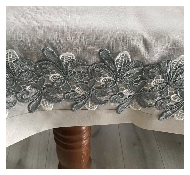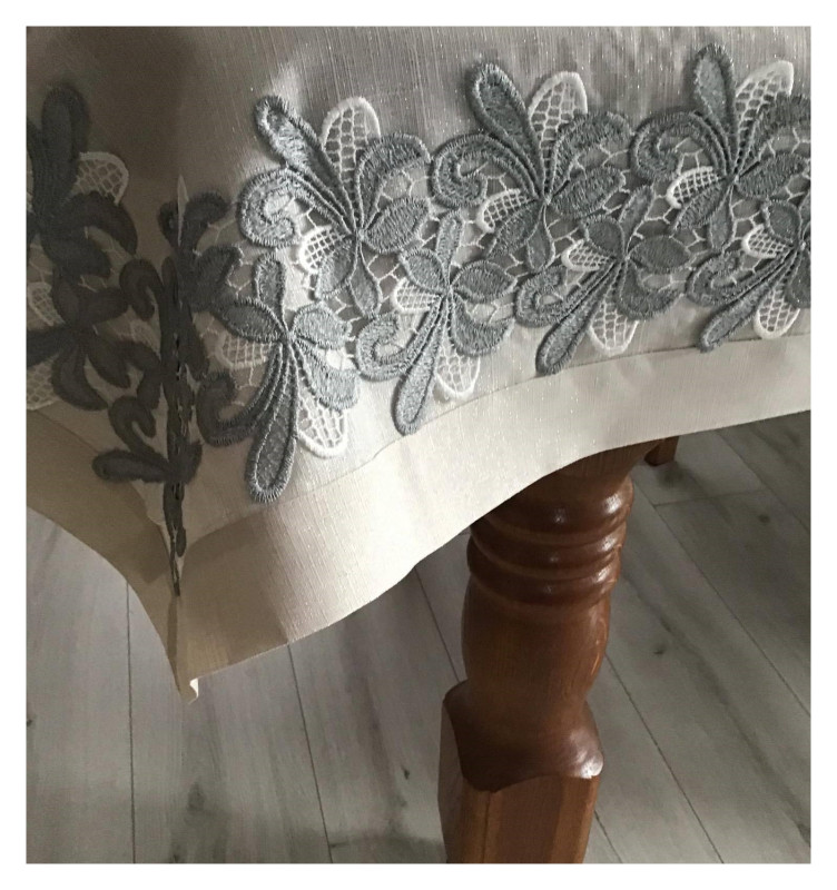 Obrusy Lniane Beżowe Ze Srebrną Nitką I Szerokim Haftem