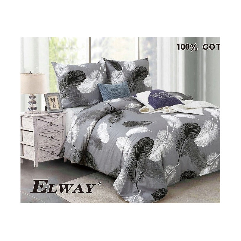 Pościel Dwustronna Bawełniana Elway 220/200 Pióra Na Szarości