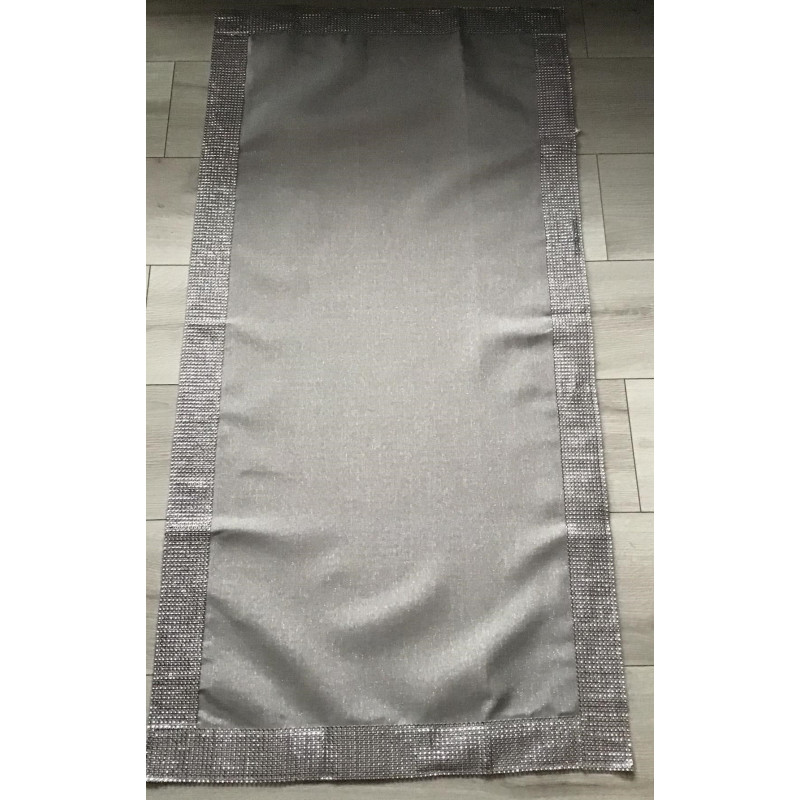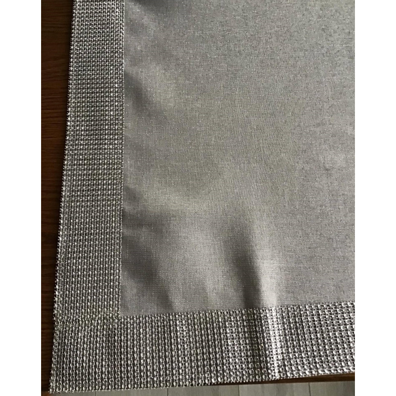 Elegancki obrus obszyty cekinami . Wykonany z wysokogatunkowej tkaniny poliestrowej metalizowanej - srebrne świecące nitki .Kolor szary. Dostępny w różnych rozmiarach , pięknie udekoruje każdy stolik, ławę czy stół w jadalni.
