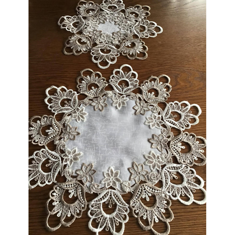 Serwetka Okrągła Jasny Ekri Obszyta Beżową Gipiurą