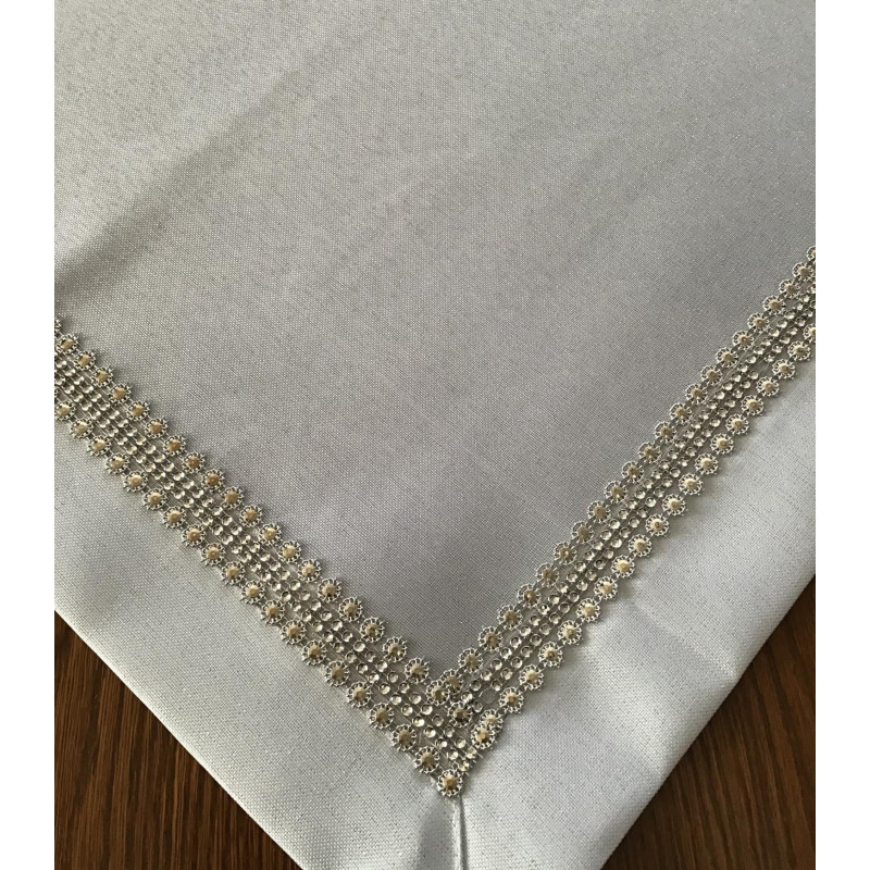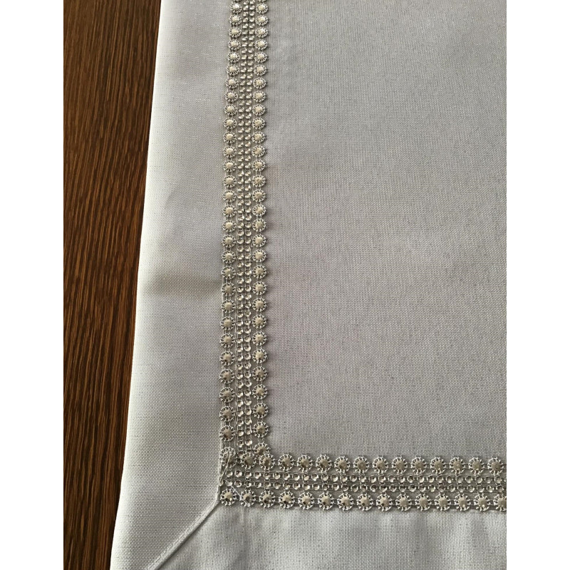 Eleganckie bieżniki i serwety lniane ze srebrną nitką i cekinami.
