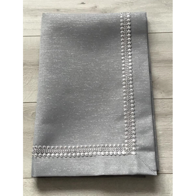 Eleganckie bieżniki i serwety lniane ze srebrną nitką i cekinami.