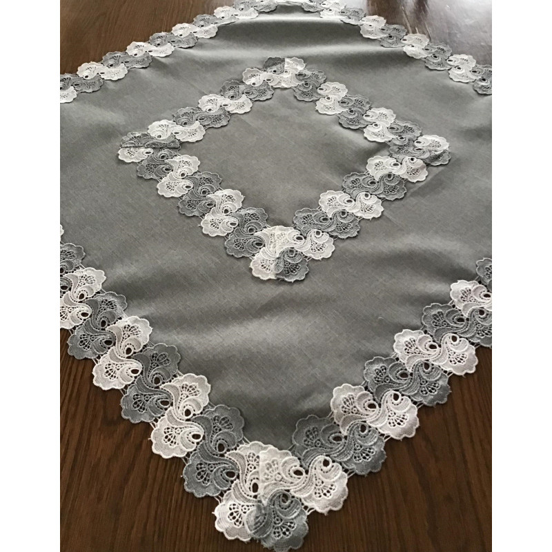 Bieżniki /Serwety Lniane Szare Z Gipiurą