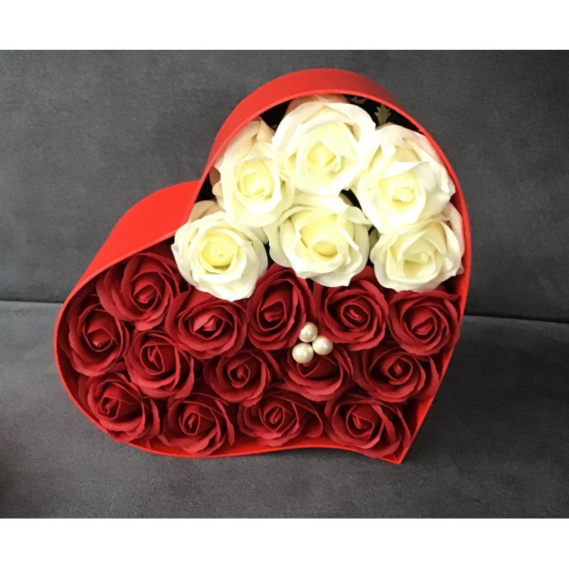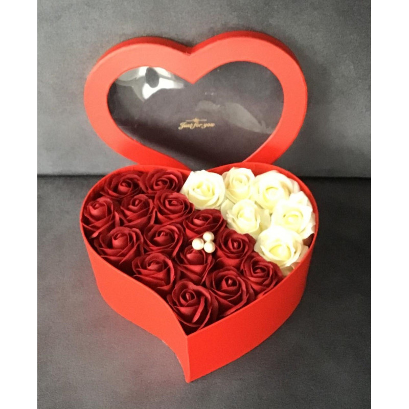 Kwiaty wykonane z mydła zapakowane w eleganckie pudełko .w kształcie serca z przezroczystą pokrywką z napisem JUST FOR YOU. Pięknie pachną i pienią się. Można użyć do aromatycznej kąpieli lub wykorzystać jako dekorację. Zestaw mydełek kwiatowych w pięknym sercu to super prezent na walentynki , urodziny , imieniny , Dzień Kobiet czy bez okazji gdy chcemy sprawić komuś przyjemność. Flower box pomoże w wywarciu niezapomnianego wrażenia , wyrazu uczuć w jednym prostym geście.