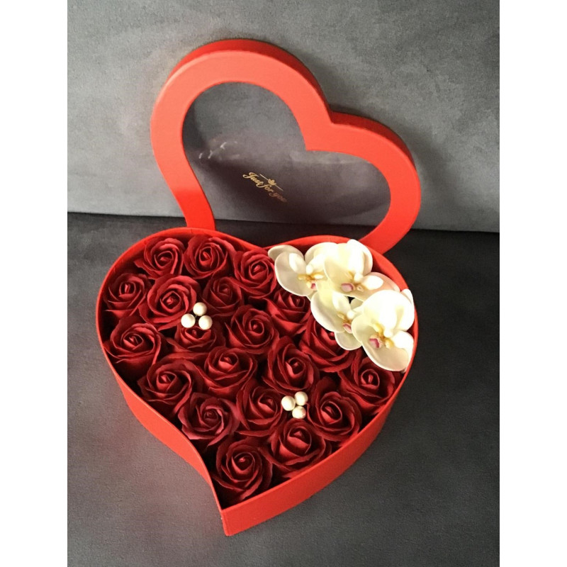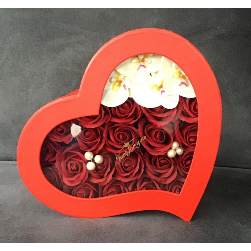 Kwiaty wykonane z mydła zapakowane w eleganckie pudełko .w kształcie serca z przezroczystą pokrywką z napisem JUST FOR YOU. Pięknie pachną i pienią się. Można użyć do aromatycznej kąpieli lub wykorzystać jako dekorację. Zestaw mydełek kwiatowych w pięknym sercu to super prezent na walentynki , urodziny , imieniny , Dzień Kobiet czy bez okazji gdy chcemy sprawić komuś przyjemność. Flower box pomoże w wywarciu niezapomnianego wrażenia , wyrazu uczuć w jednym prostym geście.