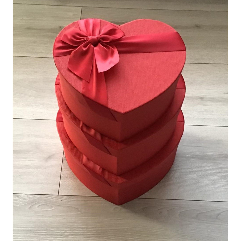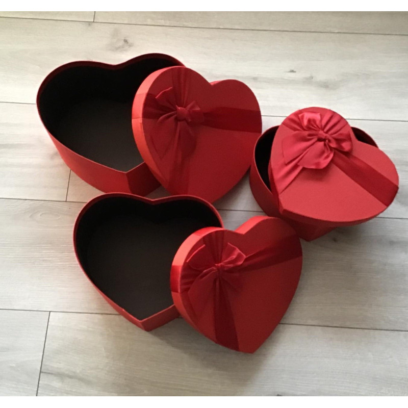 Pudełka W Kształcie Serca Komplet 3 Sztuki Red Z Kokardą