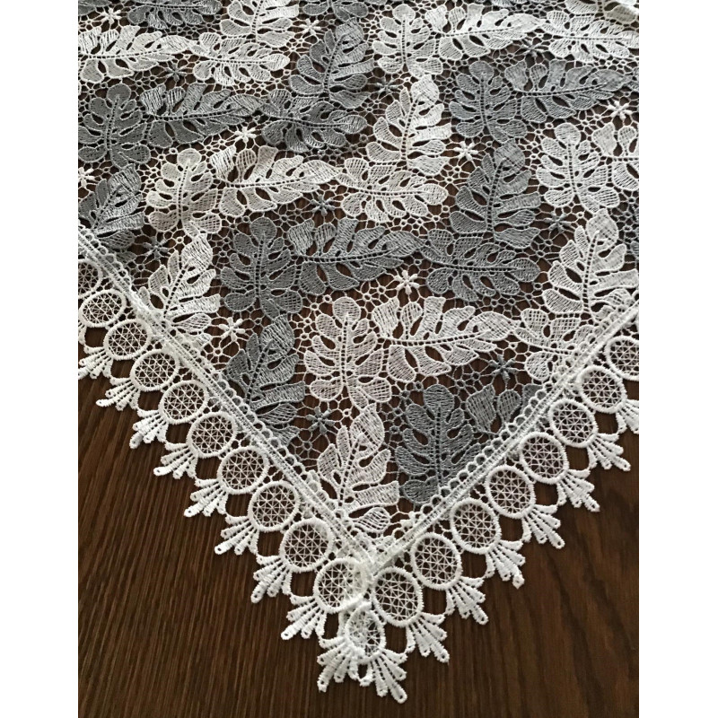 Eleganckie bieżniki i serwety całe z gipiury w biało szare liście.