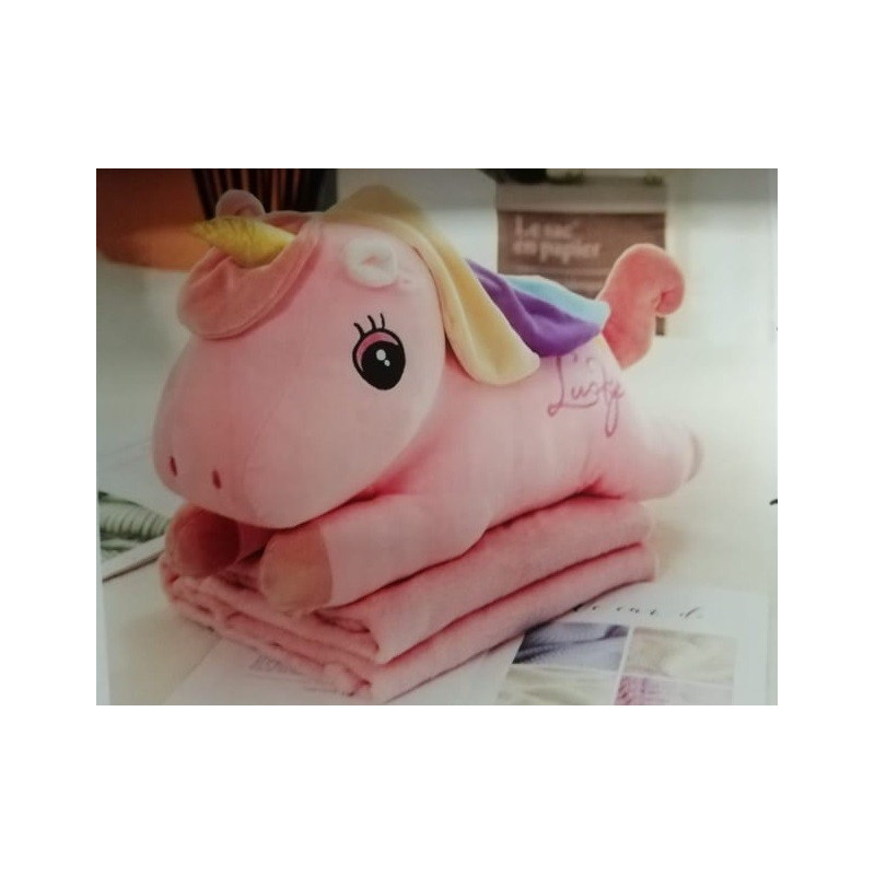 Koc Maskotka 2 W 1 Poduszka Jednorożec Różowy