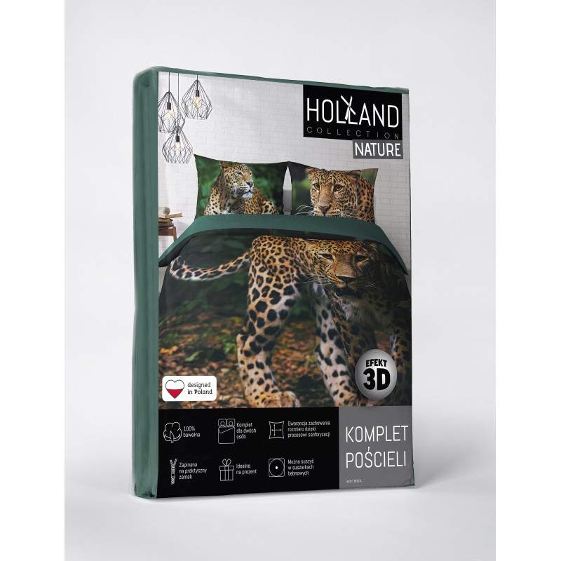 Pościel Holland jest miękka i wyjątkowo delikatna w dotyku. Tkanina wykonana z wysokiej jakości przędz w połączeniu z nowoczesnym wzornictwem daje produkt o bardzo wysokiej jakości. Kolory są wyraziste i zachowują swoją barwę nawet po wielu praniach. Komplet pościeli jest idealnym pomysłem na prezent.
