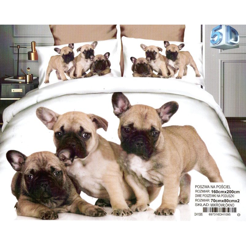 Pościel 3D 160/200 3 Części Wzór Buldogi RB160-1095
