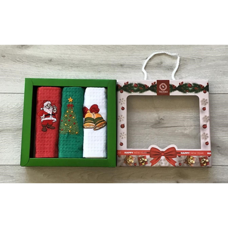 Komplet Ścierek Haftowanych 3 Szt Wzór Świąteczny