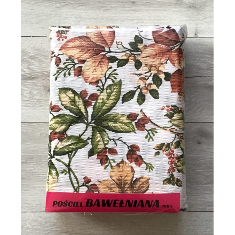 Komplet Pościeli Z Kory 100% Bawełna 160x200cm Jesienne Liście Na Białym