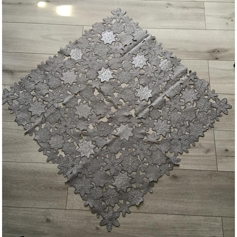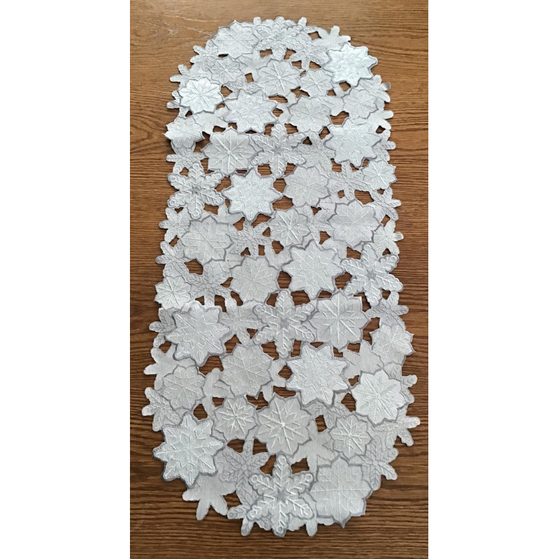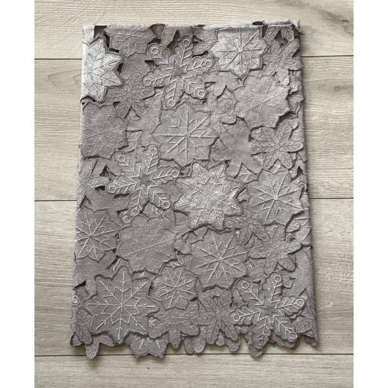 Bieżniki /Serwety Szare Ze Srebrnym Haftem Liście