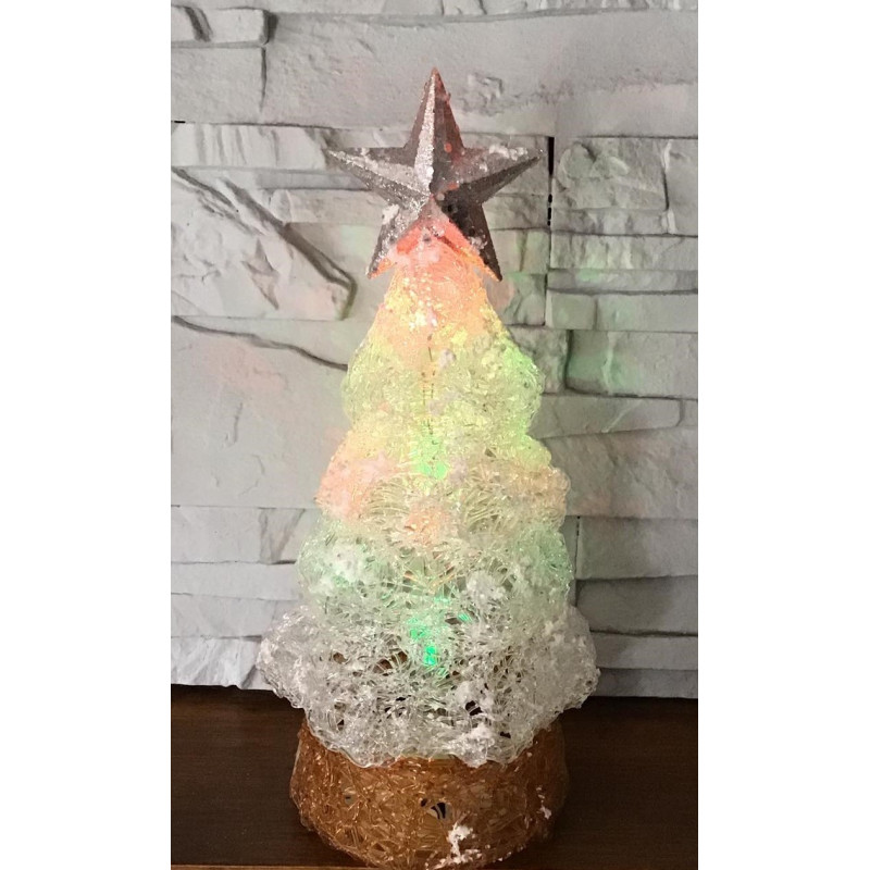 Lampion choinka wykonana ze sztucznego tworzywa w kolorze białym z białą imitacją śniegu. Lampion podświetlany ciepłym światłem ledowym zmieniający kolory.