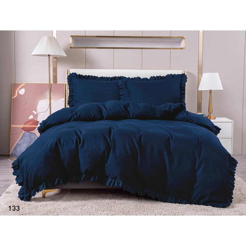 Pościel Z Falbanką Satyna Bawełniana 220x200 3cz Granat