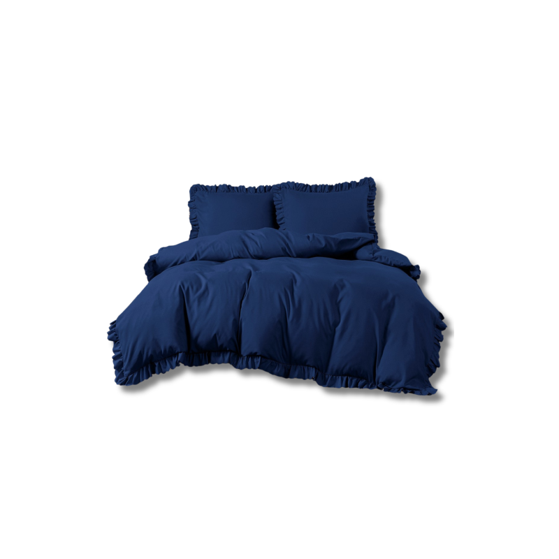 Pościel Z Falbanką Satyna Bawełniana 160x200 3cz Granat
