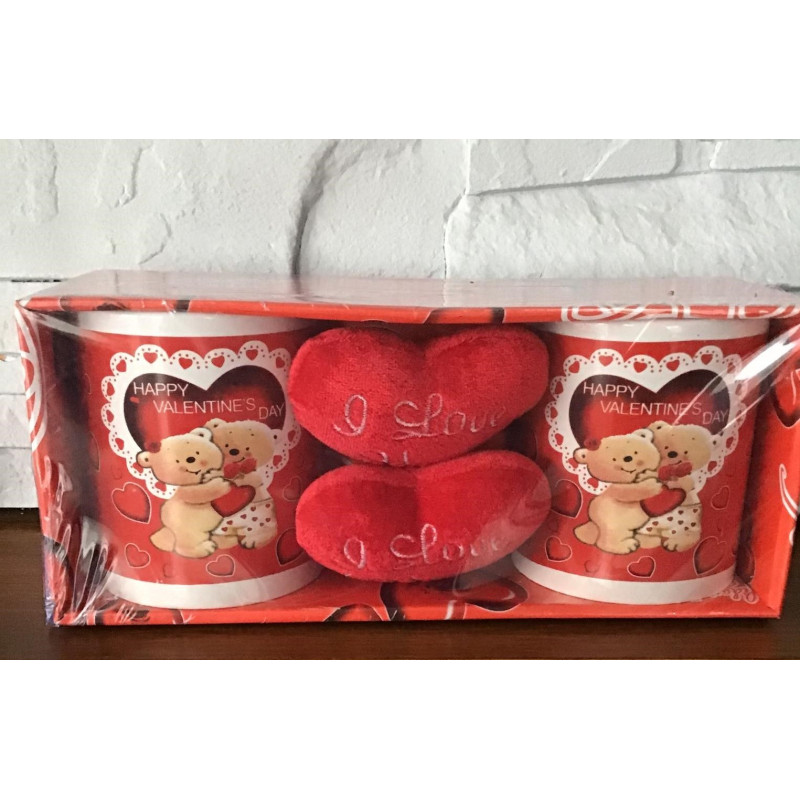 Zestaw 2 kubków ceramicznych z nadrukiem Walentynkowym o pojemności 300ml zapakowany w elegancki kartonik . W zestawie są 2 serduszka z napisem I LOVE YOU.