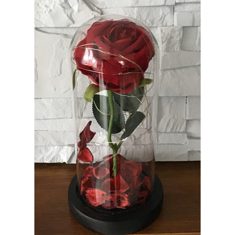 Wieczna róża zamknięta w szkle opleciona diodami led to idealny , niestandardowy sposób aby wyrazić swoje uczucia względem bliskich osób.