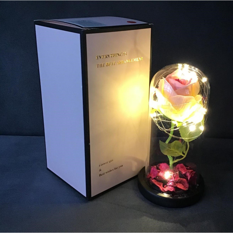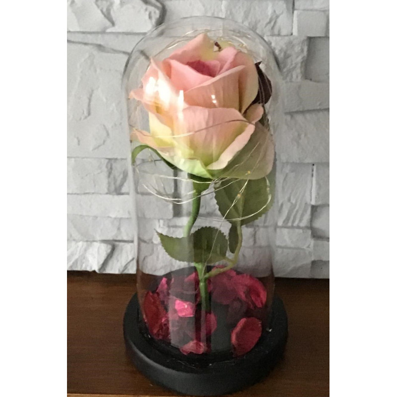 Wieczna Róża W Szkle Świecąca Led Prezent Jasny Róż