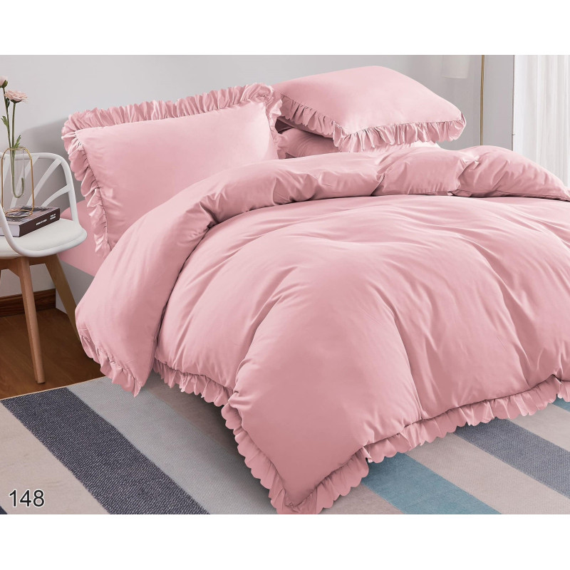 Pościel Z Falbanką Satyna Bawełniana 220x200 3cz Pudrowy Róż