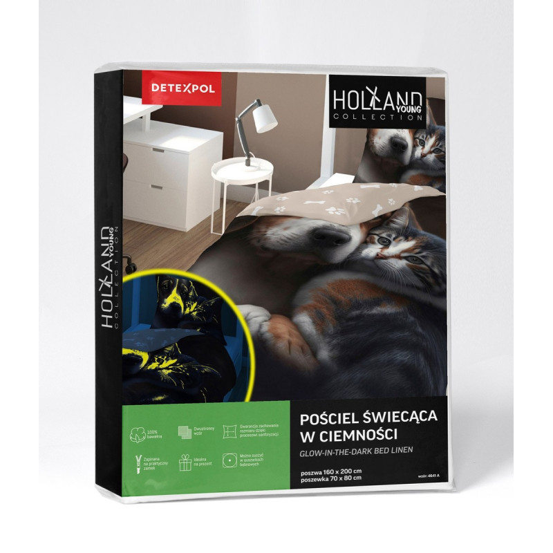 Pościel Fluorescencyjna 100% Bawełna 160x200cm 2cz Pies i Kot