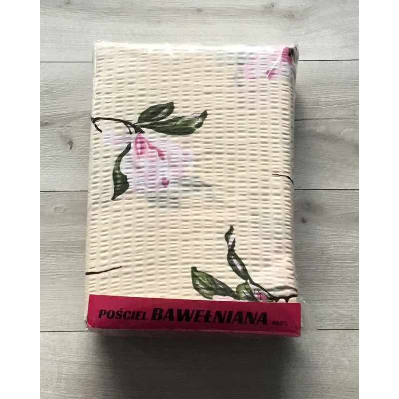 Komplet Pościeli Z Kory 100% Bawełna 220x200cm Magnolia Na Kremowym