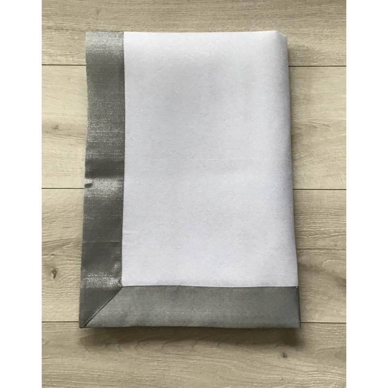 Bieżniki /Serwety Białe Ze Srebrną Nitką Z Szarą Lamówką