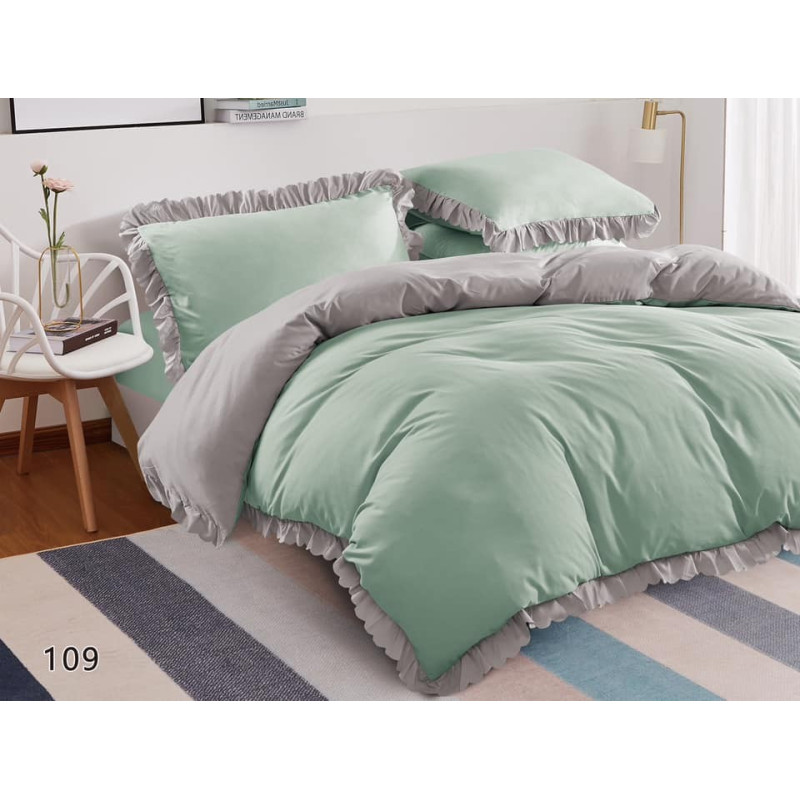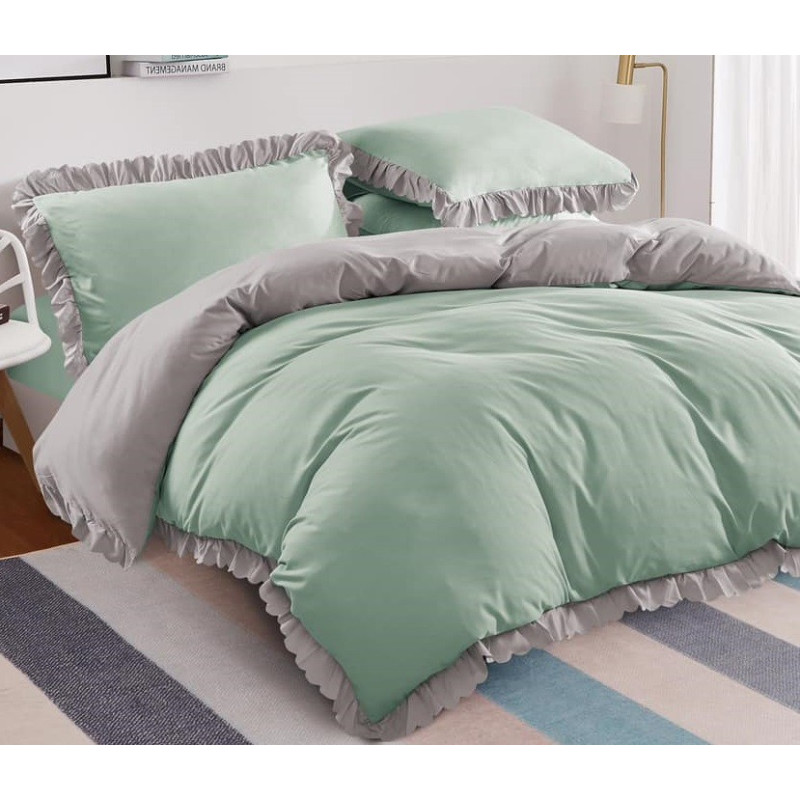 Pościel 3cz 220x200 z falbanką FAB220-109(szary/mięta)