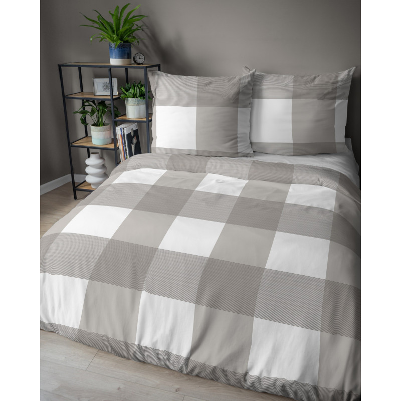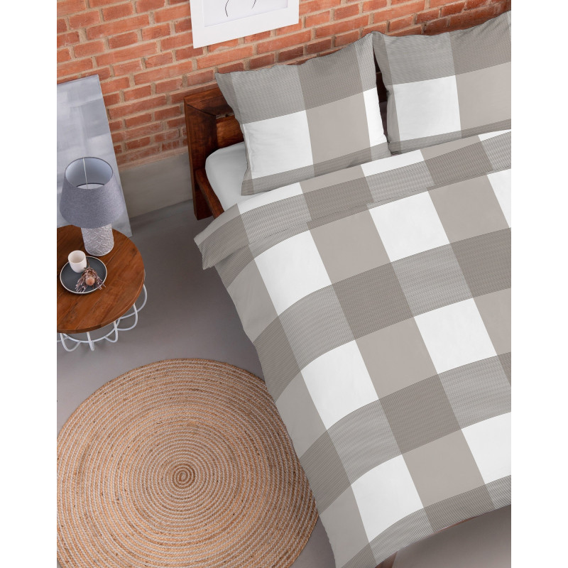 Pościel Flanela 220x200 100% Bawełna Detexpol 4944B Krata Beżowa