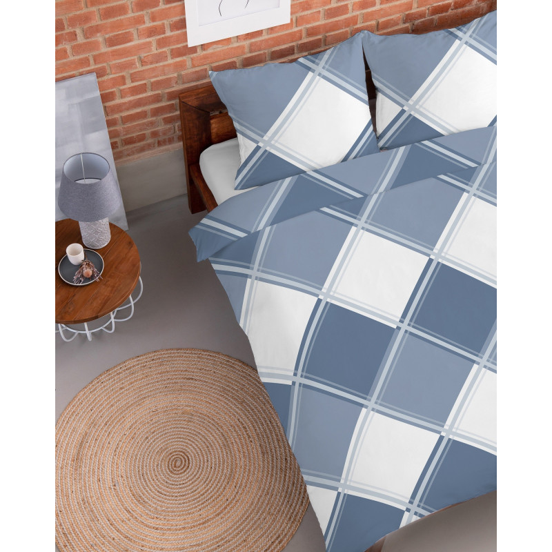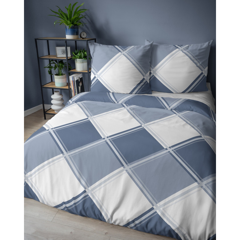 Pościel Flanela 220x200 100% Bawełna Detexpol 4955AB Niebieska Szachownica