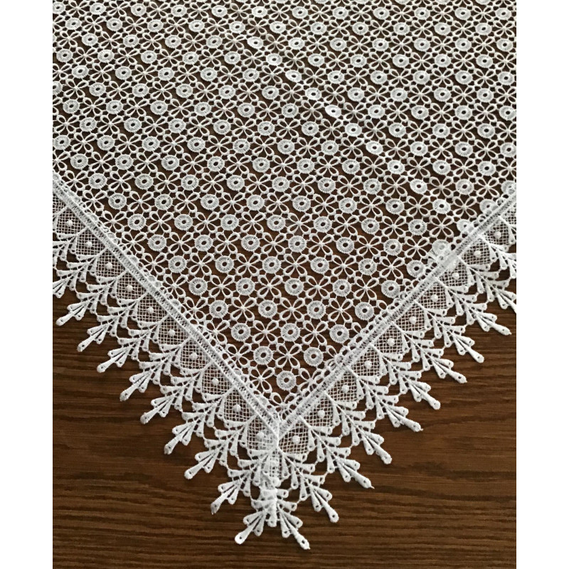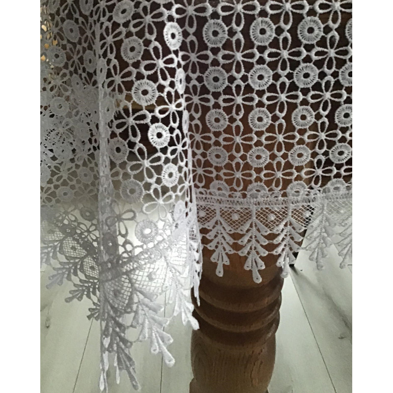 Bardzo elegancki i ekskluzywny obrus wykonany z gipiury koronkowej . Produkt najwyższej jakości został stworzony z niezwykłą precyzją . Super ozdobi każdy stół. Wzór w białe kwiaty i kólka. . Elegancki i praktyczny na każda okazję.