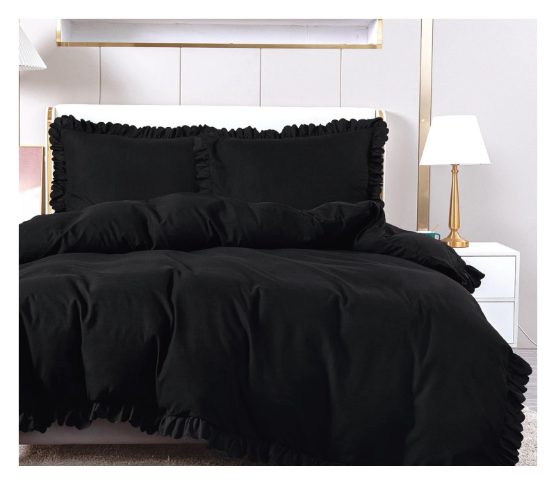 Pościel Z Falbanką Mikrofibra Cotton World 160x200 3cz Czarna