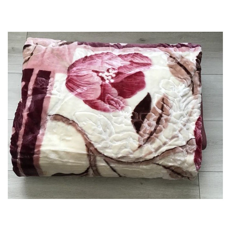 Koc Elway Gruby Tłoczony 200/240cm Kwiaty Bordowe