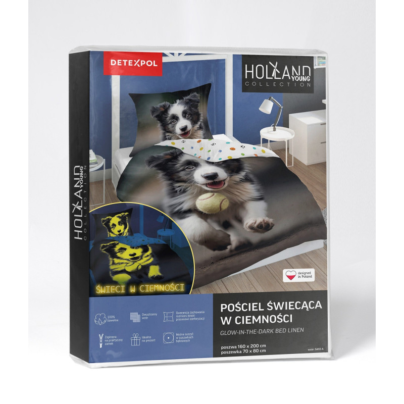 Pościel Fluorescencyjna 100% Bawełna 160x200cm 2cz Pies