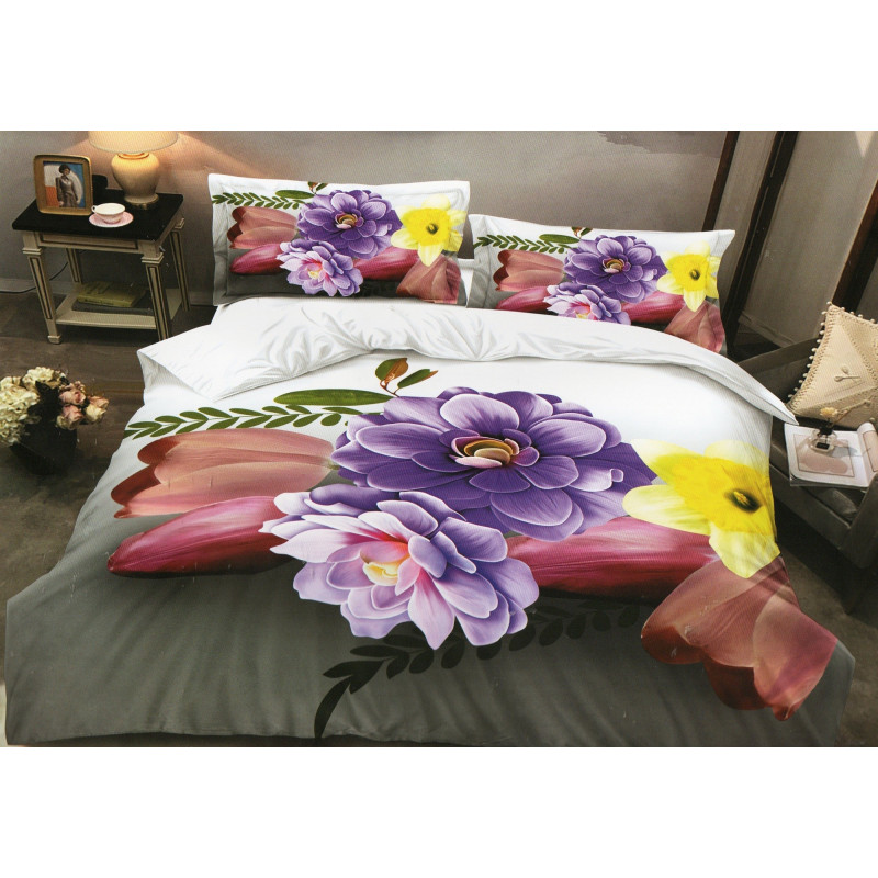 Pościel 3D Satyna Bawełniana 220/200 4cz Kwiaty