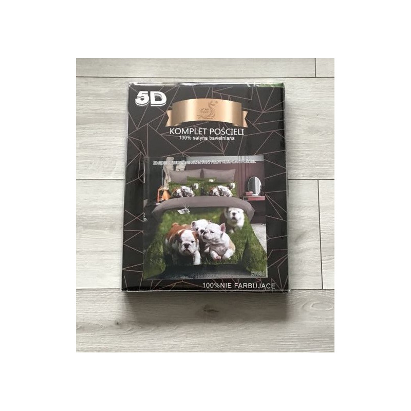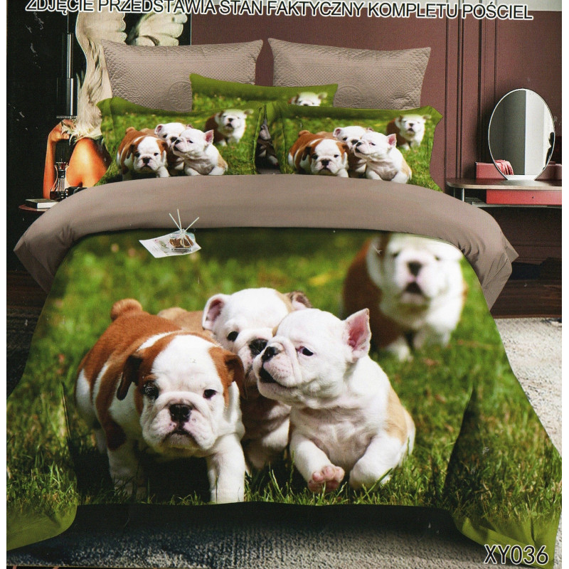 Pościel 3D Satyna Bawełniana 160/200 3cz Buldogi Wzór Faktyczny