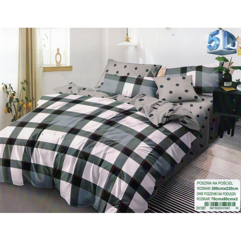Pościel 3D Satyna Bawełniana 220/200 3cz Krata