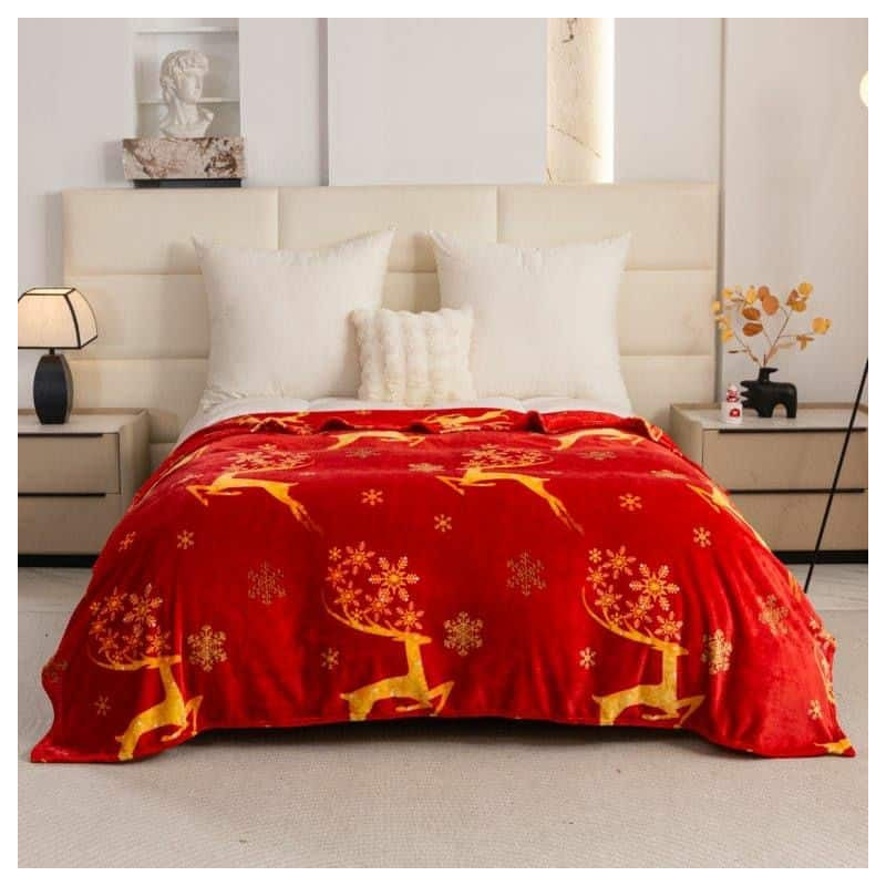 Koc Świąteczny Mikrofibra Cotton World 220x200 Czerwony Renifery