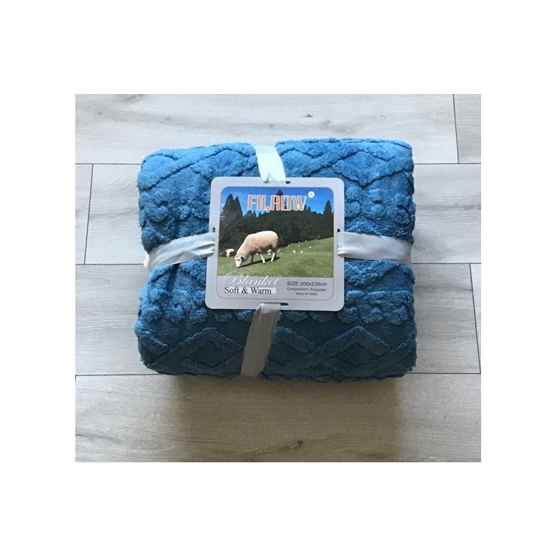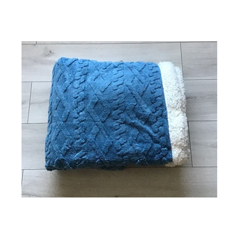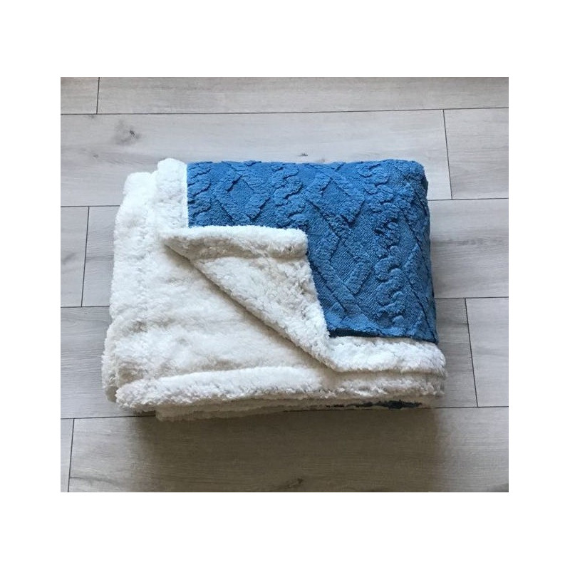 Koc Dwustronny Alpaka Sherpa 200x230cm Niebieski Sweterek