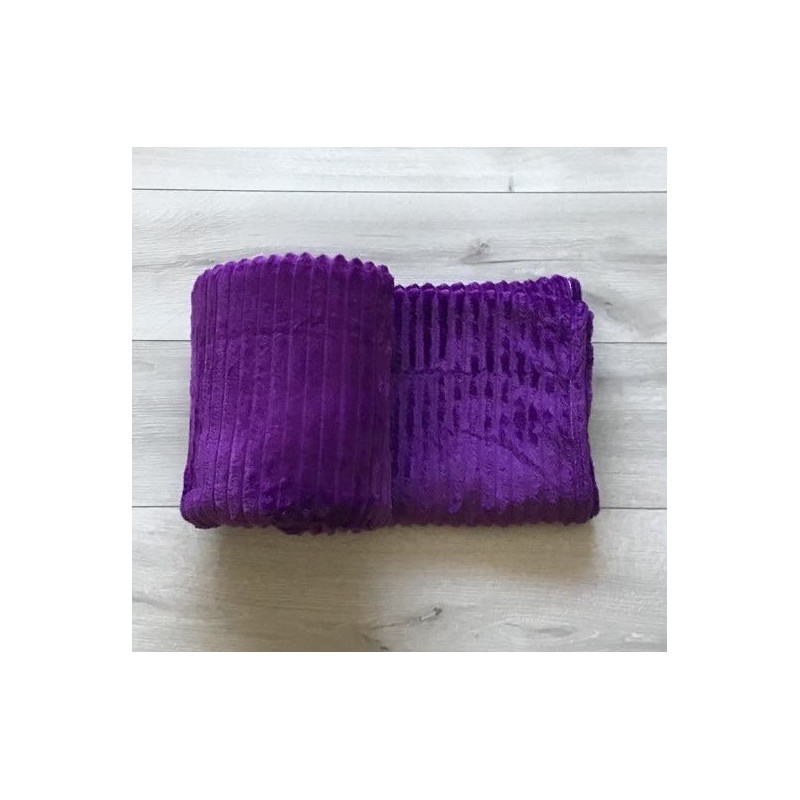 Koc Z Mikrofibry Tłoczony Pasy 160x200cm Ciemny Fiolet