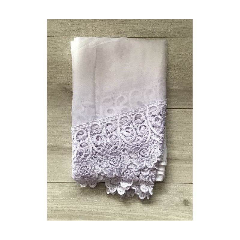 Firana gotowa uszyta ze śnieżnobiałego woalu . Obszyta elegancką gipiurą. Uszyta w falę.