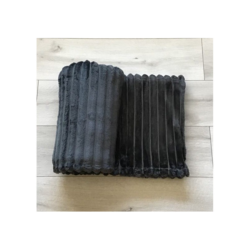 Koc 100% Mikrofibra Cotton World Tłoczony Pasy 160x200 Ciemny Szary