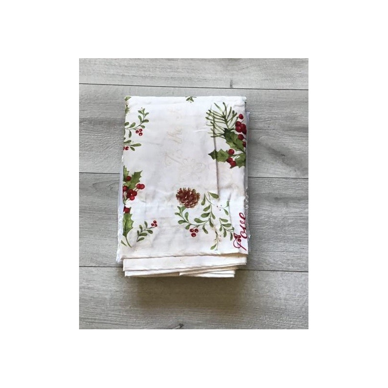 Biały woal z kololrowym materiałem z wzorem świątecznym i delikatną gipiurą