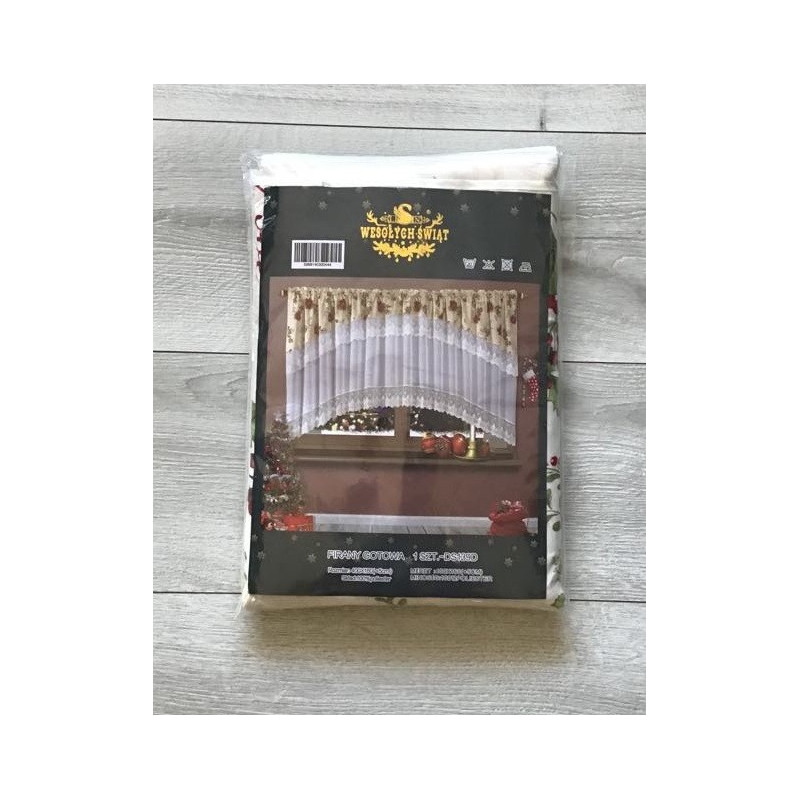 To piękna ozdoba okna , która sprawia że staje się ona wyjątkową dekoracją na święta , a nie tylko punktem świetlnym. Świetnie będzie się prezentować w każdym pomieszczeniu. Doszyte gipiury oraz wzory świąteczne na firance sprawiają , że wygląda bardzo elegancko.