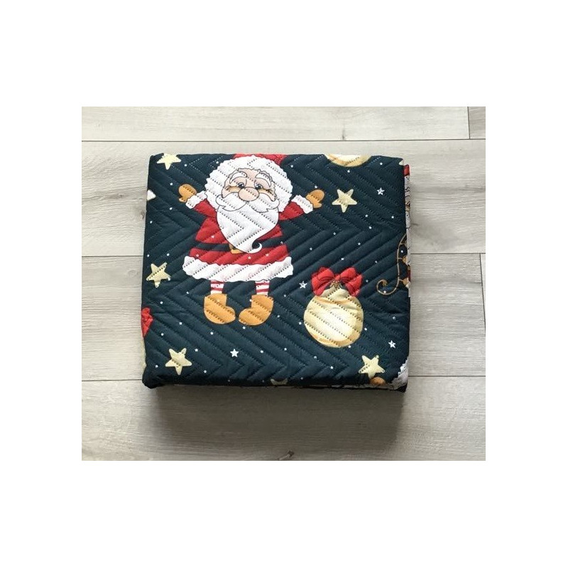 Narzuta Świąteczna Pikowana Cotton World 170x210cm Granatowa Mikołaje
