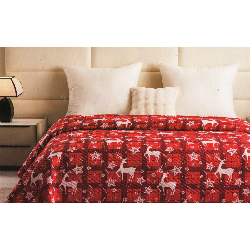 Narzuta Świąteczna Pikowana Cotton World 170x210cm Renifery Gwiazdki