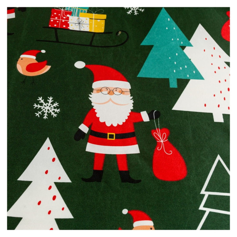 Pościel Świąteczna 3D Satyna Bawełniana 160/200 4cz Zielona Mikołaje i Choinki