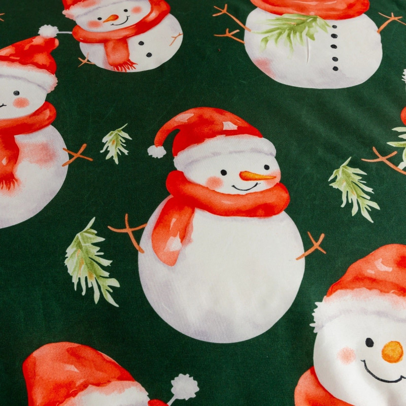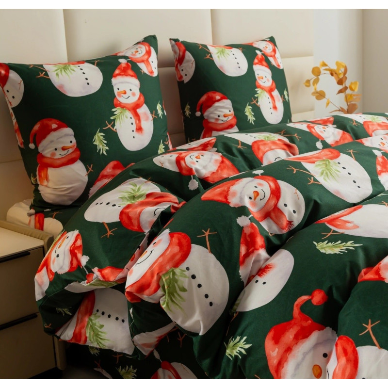 Pościel Świąteczna 3D Satyna Bawełniana 160/200 4cz Zielona Wesołe Bałwanki