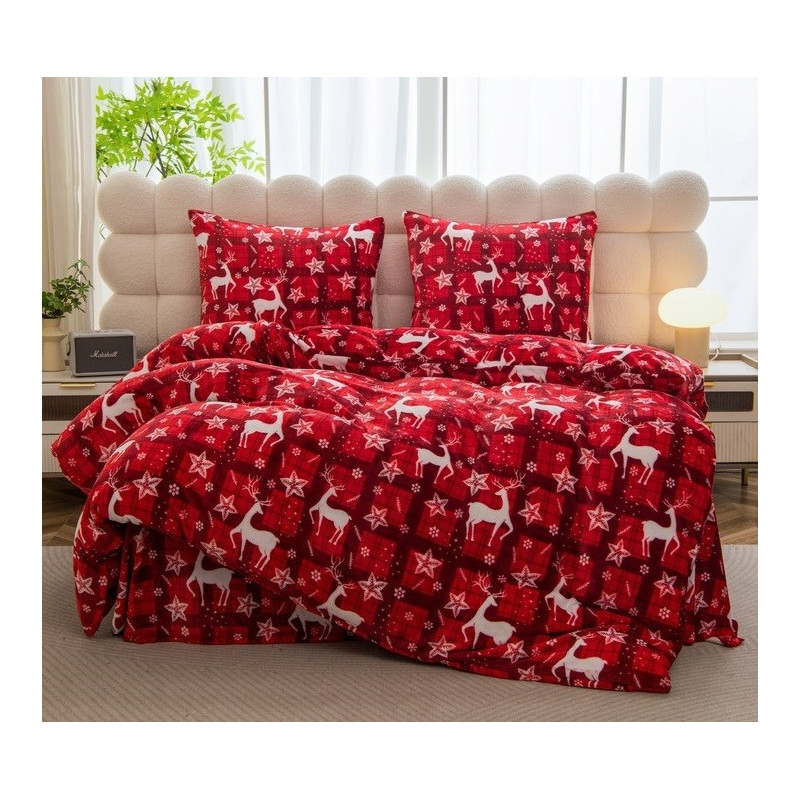 Pościel Świąteczna Gruba Z Mikrofibry Miś 160x200cm 3cz Renifery Gwiazdki